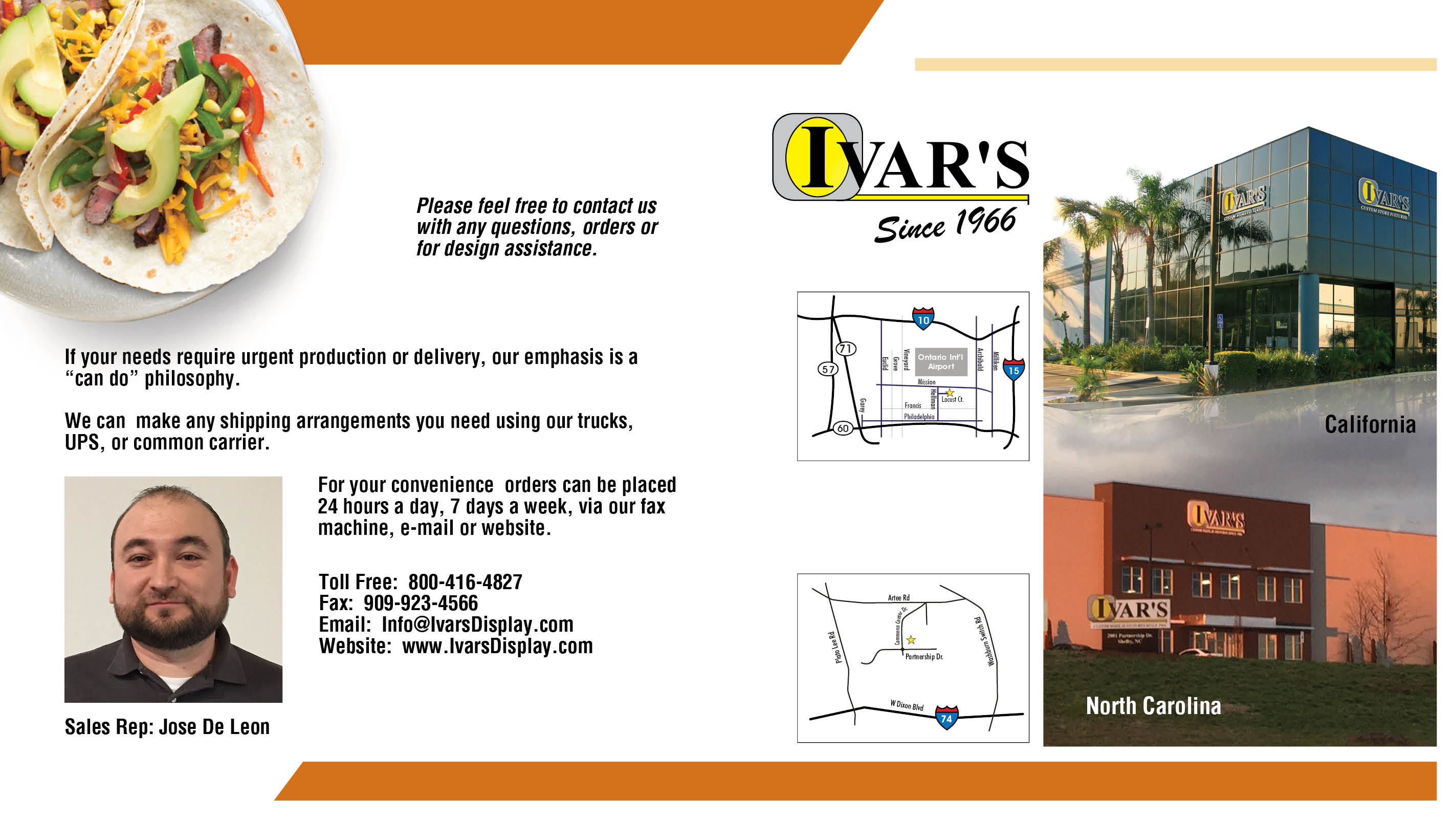 Fast & Efficient Nationwide Shopping, from our East and West Coast Location. P (800) 416-4827 F (909) 923-4566